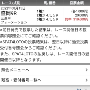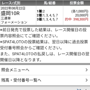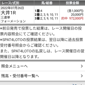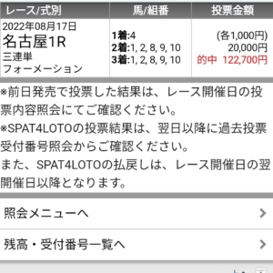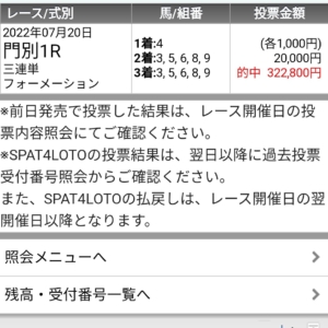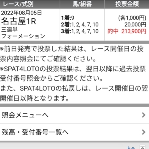 初めて馬券を買いましたが、いきなり指定通りに3連単20点購入し